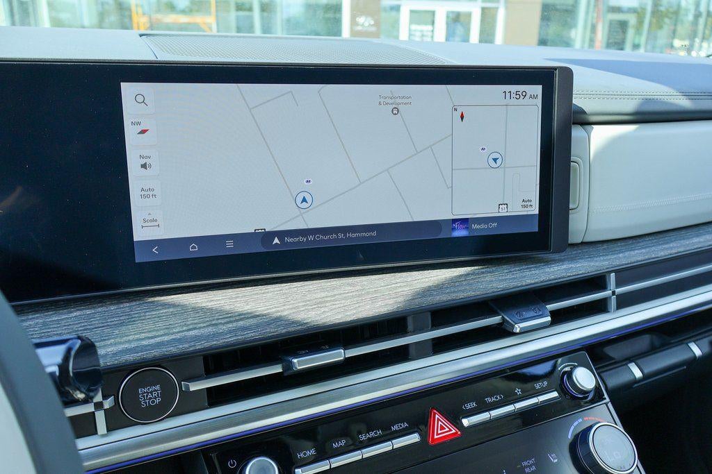 - Radio: AM/FM/HD Bose Premium Audio System -inc: 12 speakers including subwoofer, external amplifier, 12.3" wide touchscreen, Apple CarPlay and Android Auto, Bluetooth® hands-free w/wireless audio streaming, dynamic voice recognition, USB connectivity, SiriusXM, Blue Link+ connected car system, navigation system including traffic flow w/incident data via HD Radio (HERE) and rear seat quiet mode