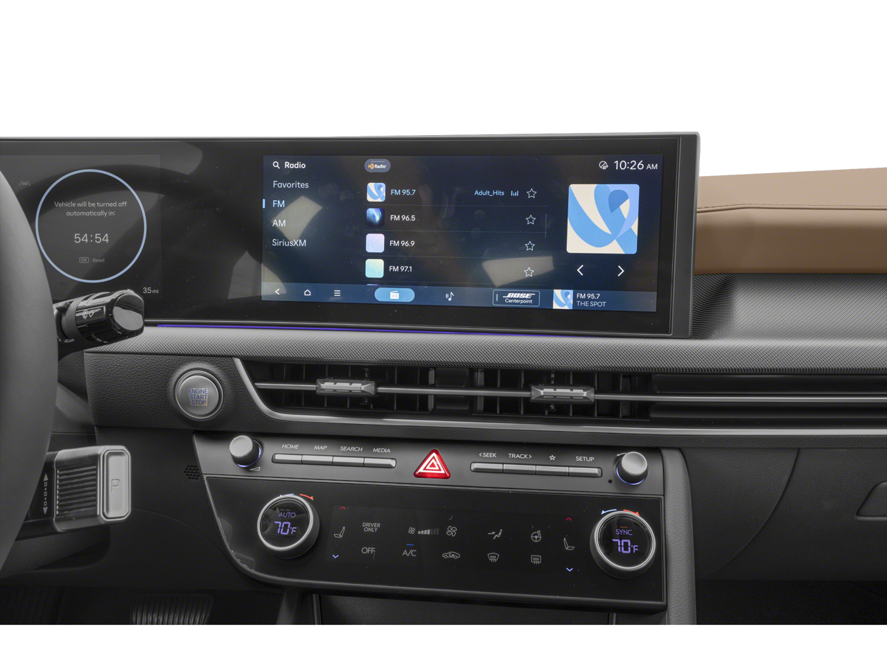 • Radio: AM/FM/HD/MP3/SiriusXM -inc: 12.3" high-resolution touchscreen, Bose premium audio w/12 speakers (1 center channel, 2 dash, 2 front tweeters, 4 door mounted, 2 rear mounted speakers plus 1 rear mounted subwoofer), dynamic voice recognition w/Wi-Fi hotspot, smartphone integration, Bluetooth®, Over-The-Air updates, USB connectivity, Blue Link+ connected car, Android Auto/Apple CarPlay capability (wireless and wired), HERE HD traffic and diversity antenna (navigation and premium audio)