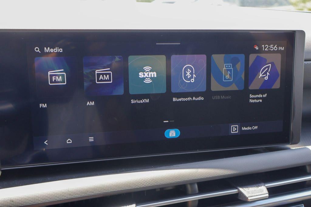 - Radio: AM/FM/HD Audio System -inc: 12.3" color touchscreen display, 6 speakers, SiriusXM satellite radio system (3-month trial subscription), wireless Apple CarPlay and Android Auto integration, controller OTA update capability, Blue Link connected car system and USB connectivity