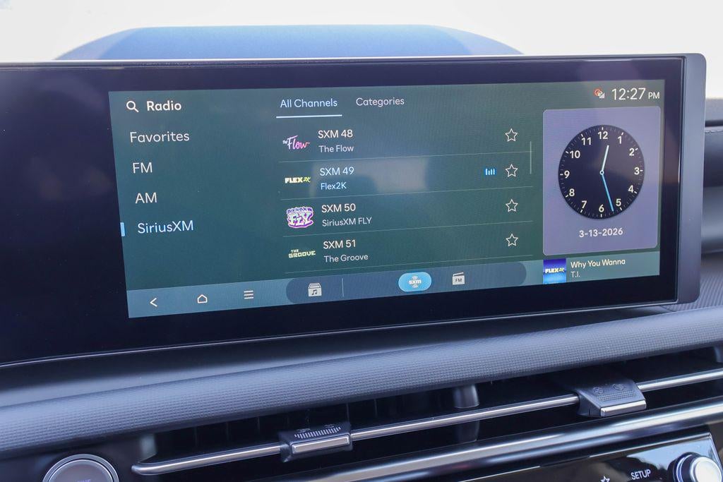 - Radio: AM/FM/HD Audio System -inc: 12.3" color touchscreen display, 6 speakers, SiriusXM satellite radio system (3-month trial subscription), wireless Apple CarPlay and Android Auto integration, controller OTA update capability, Blue Link connected car system and USB connectivity