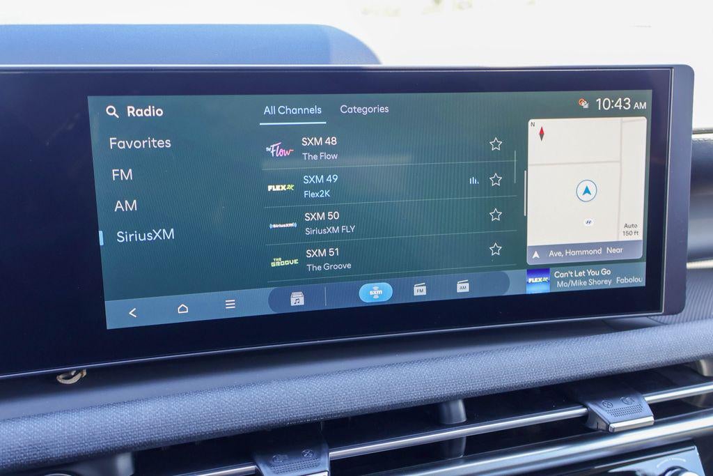 - Radio: AM/FM/HD Audio System -inc: 12.3" color touchscreen w/onboard navigation, 6 speakers, SiriusXM satellite radio system (3-month trial subscription), wireless Apple CarPlay and Android Auto integration, dynamic voice recognition, controller OTA update capability, map and multimedia software OTA update capability, Blue Link connected car system and USB connectivity