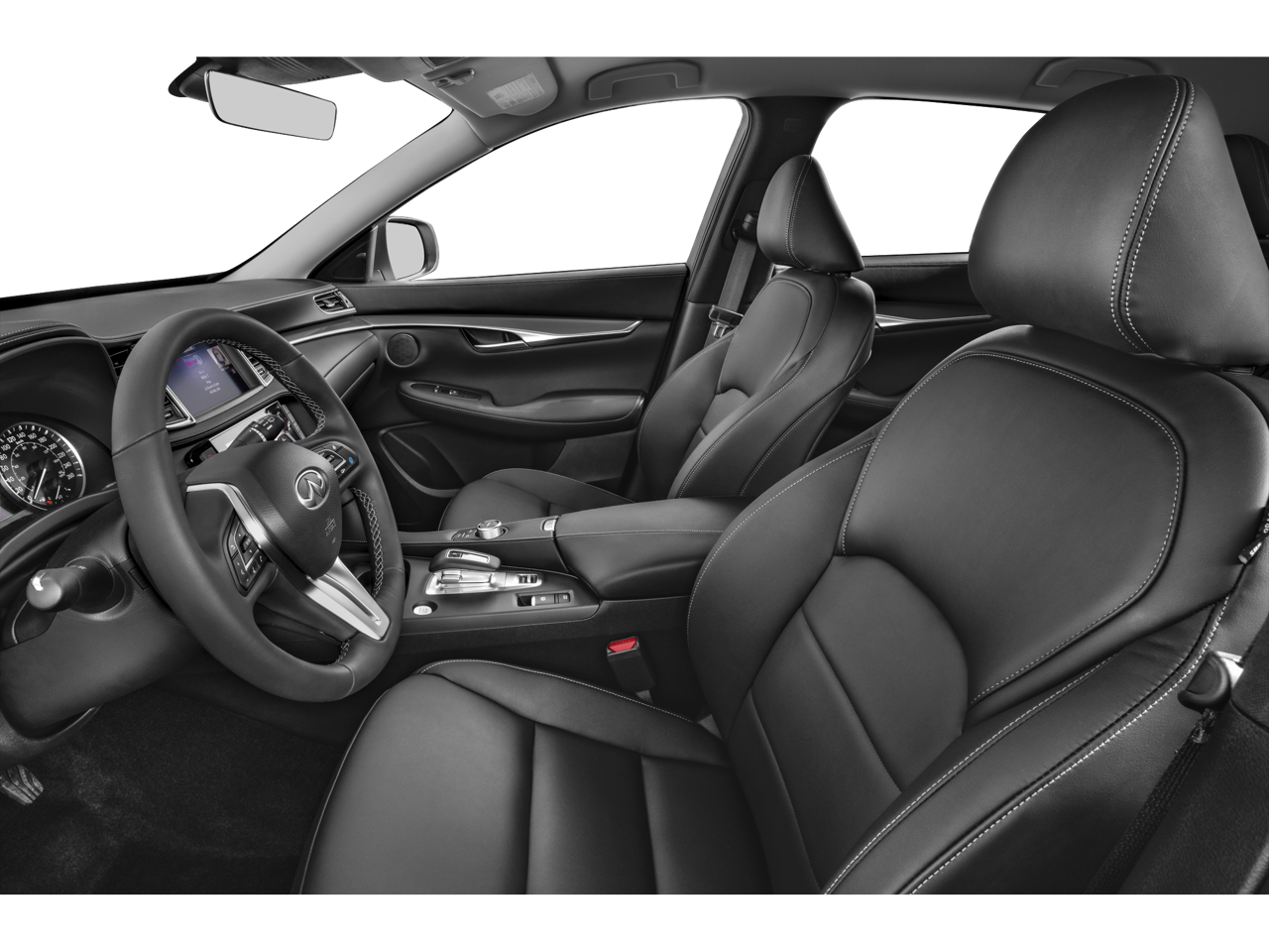 4-Wheel Disc Brakes, 5.846 Axle Ratio, 6 Speakers, ABS brakes, Air Conditioning, Alloy wheels, AM/FM radio: SiriusXM, Auto High-beam Headlights, Auto-dimming Rear-View mirror, Automatic temperature control, Brake assist, Bumpers: body-color, CD player, Delay-off headlights, Driver door bin, Driver vanity mirror, Dual front impact airbags, Dual front side impact airbags, Electronic Stability Control, Emergency communication system: INFINITI InTouch (1-year complimentary trial), Exterior Parking Camera Rear, Floor Mats, Four wheel independent suspension, Front anti-roll bar, Front Bucket Seats, Front Center Armrest, Front dual zone A/C, Front reading lights, Fully automatic headlights, Garage door transmitter: HomeLink, Heated door mirrors, Heated Front Bucket Seats, Heated front seats, Illuminated entry, Illuminated Kick Plates, Knee airbag, Leather Shift Knob, Leather steering wheel, Leather-Appointed Seat Trim, Literature Kit, Low tire pressure warning, Memory seat, Occupant sensing airbag, Outside temperature display, Overhead airbag, Overhead console, Panic alarm, Passenger door bin, Passenger vanity mirror, Power door mirrors, Power driver seat, Power Liftgate, Power moonroof, Power passenger seat, Power steering, Power windows, Radio data system, Radio: HD Audio System, Rear anti-roll bar, Rear Parking Sensors, Rear reading lights, Rear seat center armrest, Rear side impact airbag, Rear window defroster, Rear window wiper, Remote keyless entry, Security system, Speed control, Speed-sensing steering, Speed-Sensitive Wipers, Splash Guards (Set of 4), Split folding rear seat, Spoiler, Steering wheel mounted audio controls, Tachometer, Telescoping steering wheel, Tilt steering wheel, Traction control, Trip computer, Turn signal indicator mirrors, Variably intermittent wipers, and Wheels: 19 Silver Painted Aluminum Alloy.