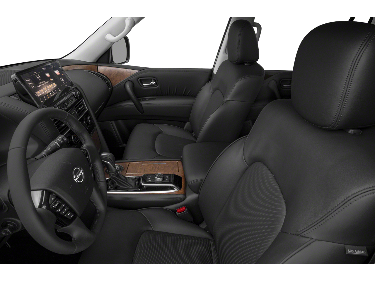 Captain's Chairs Package (2nd Row Captain's Chairs and 2nd Row Center Console w/Padded Armrest), 13 Speakers, 2.94 Axle Ratio, 3rd Row Carpeted Floor Mats - Captain Seat, 3rd row seats: split-bench, 4-Wheel Disc Brakes, ABS brakes, Air Conditioning, Alloy wheels, AM/FM radio: SiriusXM, Anti-whiplash front head restraints, Auto High-beam Headlights, Auto tilt-away steering wheel, Auto-dimming door mirrors, Auto-dimming Rear-View mirror, Auto-leveling suspension, Automatic temperature control, Bose 13-Speaker Premium Audio System, Brake assist, Bumpers: body-color, Delay-off headlights, Driver door bin, Driver vanity mirror, Dual front impact airbags, Dual front side impact airbags, Electronic Stability Control, Emergency communication system: NissanConnect Services, Exterior Parking Camera Rear, Four wheel independent suspension, Front anti-roll bar, Front Bucket Seats, Front Center Armrest, Front dual zone A/C, Front fog lights, Front reading lights, Fully automatic headlights, Garage door transmitter: HomeLink, Heated door mirrors, Heated Front Bucket Seats, Heated front seats, Heated steering wheel, Illuminated entry, Knee airbag, Leather Shift Knob, Leather-Appointed Seat Trim, Low tire pressure warning, Memory seat, Navigation System, NissanConnect featuring Apple CarPlay and Android Auto, Occupant sensing airbag, Outside temperature display, Overhead airbag, Overhead console, Panic alarm, Passenger door bin, Passenger vanity mirror, Power door mirrors, Power driver seat, Power Liftgate, Power moonroof, Power passenger seat, Power steering, Power windows, Premium audio system: Bose, Radio: NissanConnect w/SiriusXM, Rear air conditioning, Rear anti-roll bar, Rear reading lights, Rear seat center armrest, Rear window defroster, Rear window wiper, Reclining 3rd row seat, Remote keyless entry, Security system, Speed control, Speed-sensing steering, Speed-Sensitive Wipers, Split folding rear seat, Spoiler, Steering wheel memory, Steering wheel mounted audio controls, Tachometer, Telescoping steering wheel, Tilt steering wheel, Traction control, Trip computer, Turn signal indicator mirrors, Variably intermittent wipers, Voltmeter, and Wheels: 20 x 8J Painted Alloy.