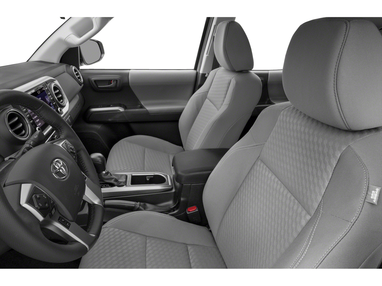 Designed with both style and functionality in mind, the 2023 Toyota Tacoma SR5 features a sleek, bold exterior with a charcoal grille, chrome rear bumper, and 16-inch styled steel wheels. The interior offers a comfortable and well-equipped cabin, with features like fabric seat trim, a front center armrest, and a split-folding rear seat.