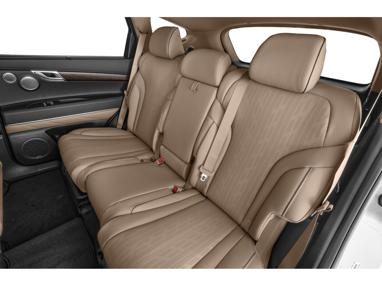 Option Group 01, 12 Speakers, 4-Wheel Disc Brakes, 4.363 Axle Ratio, ABS brakes, Air Conditioning, Alloy wheels, AM/FM radio: SiriusXM, Android Auto & Apple CarPlay, Anti-whiplash front head restraints, Auto High-beam Headlights, Auto tilt-away steering wheel, Auto-dimming door mirrors, Auto-dimming Rear-View mirror, Auto-leveling suspension, Automatic temperature control, Brake assist, Bumpers: body-color, Compass, Delay-off headlights, Driver door bin, Driver vanity mirror, Dual front impact airbags, Dual front side impact airbags, Electronic Stability Control, Emergency communication system: Genesis Connected Services, Exterior Parking Camera Rear, Four wheel independent suspension, Front anti-roll bar, Front Bucket Seats, Front Center Armrest, Front dual zone A/C, Front reading lights, Fully automatic headlights, Garage door transmitter: HomeLink, Genuine wood console insert, Genuine wood dashboard insert, Genuine wood door panel insert, Heated door mirrors, Heated Front Bucket Seats, Heated front seats, Heated steering wheel, Illuminated entry, Knee airbag, Leather steering wheel, Leatherette Seating Surfaces, Low tire pressure warning, Memory seat, Navigation System, Occupant sensing airbag, Outside temperature display, Overhead airbag, Overhead console, Panic alarm, Passenger door bin, Passenger vanity mirror, Power door mirrors, Power driver seat, Power Liftgate, Power passenger seat, Power steering, Power windows, Radio data system, Radio:14.5 Navigation System w/AM/FM/HD Radio, Rain sensing wipers, Rear air conditioning, Rear anti-roll bar, Rear reading lights, Rear seat center armrest, Rear side impact airbag, Rear window defroster, Rear window wiper, Remote keyless entry, Security system, Speed control, Speed-sensing steering, Speed-Sensitive Wipers, Split folding rear seat, Spoiler, Steering wheel memory, Steering wheel mounted audio controls, Tachometer, Telescoping steering wheel, Tilt steering wheel, Traction control, Trip computer, Turn signal indicator mirrors, Variably intermittent wipers, and Wheels: 19 x 8.5J Medium Metallic Gray Alloy.