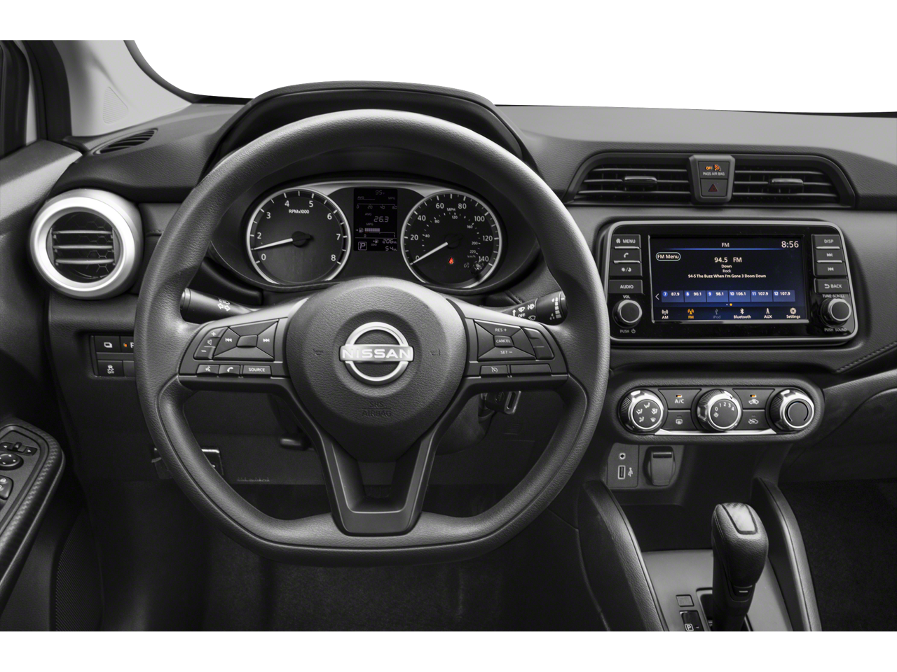 S Plus Package (16 Alloy Wheels, 60/40 Split Rear Seat, and NissanConnect w/Apple CarPlay & Android Auto), Trunk Package (Shopping Bag Hooks and Trunk Net), 15 Steel Wheels w/Full Wheel Covers, 4 Speakers, ABS brakes, Air Conditioning, AM/FM radio, Armrest, Auto High-beam Headlights, Brake assist, Bumpers: body-color, Carpeted Floor Mats, Cloth Seat Trim, Driver door bin, Driver vanity mirror, Dual front impact airbags, Dual front side impact airbags, Electronic Stability Control, Front anti-roll bar, Front Bucket Seats, Front reading lights, Front wheel independent suspension, Fully automatic headlights, Illuminated entry, Knee airbag, Low tire pressure warning, Occupant sensing airbag, Outside temperature display, Overhead airbag, Panic alarm, Passenger door bin, Passenger vanity mirror, Power door mirrors, Power steering, Power windows, Radio data system, Radio: AM/FM Audio System, Rear Parking Sensors, Rear side impact airbag, Rear window defroster, Speed control, Splash Guards, Steering wheel mounted audio controls, Tachometer, Telescoping steering wheel, Tilt steering wheel, Traction control, Trip computer, and Variably intermittent wipers.