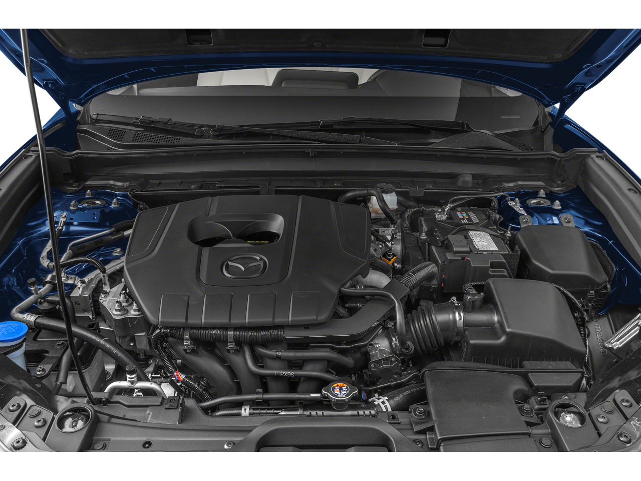 4-Wheel Disc Brakes, 6 Speakers, ABS brakes, Air Conditioning, Alloy wheels, AM/FM radio, AppLink/Apple CarPlay and Android Auto, Auto High-beam Headlights, Automatic temperature control, Brake assist, Bumpers: body-color, Compass, Delay-off headlights, Driver door bin, Driver vanity mirror, Dual front impact airbags, Dual front side impact airbags, Electronic Stability Control, Emergency communication system: Mazda Connected Services (3-year trial subscription included), Exterior Parking Camera Rear, Front anti-roll bar, Front Bucket Seats, Front Center Armrest, Front dual zone A/C, Front reading lights, Front wheel independent suspension, Fully automatic headlights, Heated door mirrors, Heated Front Bucket Seats, Heated front seats, Illuminated entry, Knee airbag, Leather Shift Knob, Leather steering wheel, Leatherette Seat Trim, Low tire pressure warning, Machine Gray Metallic Paint Charge, MAZDA CONNECT Infotainment System, Memory seat, Occupant sensing airbag, Outside temperature display, Overhead airbag, Overhead console, Panic alarm, Passenger door bin, Passenger vanity mirror, Power door mirrors, Power driver seat, Power moonroof, Power steering, Power windows, Radio data system, Radio: AM/FM Audio System, Rain sensing wipers, Rear seat center armrest, Rear side impact airbag, Rear window defroster, Rear window wiper, Remote keyless entry, Speed control, Speed-sensing steering, Split folding rear seat, Spoiler, Steering wheel mounted audio controls, Tachometer, Telescoping steering wheel, Tilt steering wheel, Traction control, Trip computer, Turn signal indicator mirrors, Variably intermittent wipers, and Wheels: 18 x 7J Aluminum Alloy.
