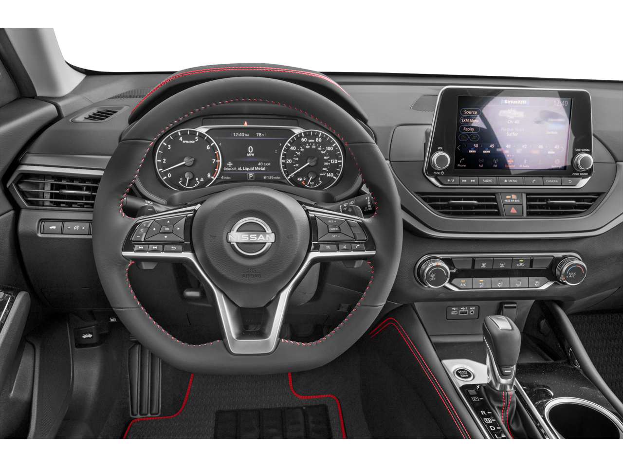 Step inside the Altima 2.5 SR and discover a cabin that combines style and comfort. The spacious interior, with its unique Sport Seats and SR Floor Mats/Trunk Mat/Hideaway Nets, provides a premium driving experience. Enjoy the convenience of the power driver's seat, remote keyless entry, and steering wheel-mounted audio controls, all while staying connected with the NissanConnect infotainment system and its seamless integration with Apple CarPlay and Android Auto.