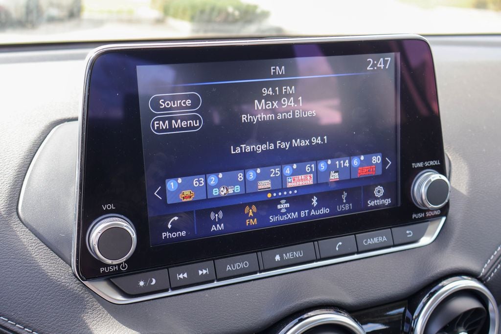 - Radio: AM/FM w/RDS/MP3/Aux-In -inc: 6 speakers plus 2 tweeters in A-pillar, 8" color display w/multi-touch control, streaming audio via Bluetooth®, Bluetooth® hands-free phone system, hands-free text messaging assistant, Siri Eyes Free, Google Assistant voice recognition w/Apple CarPlay and Android Auto, NissanConnect, (1) front USB connection port (type A), (1) additional front USB (type C), (1) charge-only USB (type A) center console and SiriusXM radio w/advanced audio features